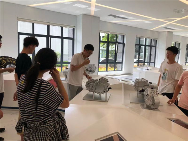 首先,技术中心的王工带着同学们参观了纳铁福公司的各种传动装置、离合器片、电控芯片等等产品,并以如数家珍般的语言讲解了各种装置的工作原理、机械结构组成与在车辆传动系统中的位置、功能、各类产品在不同品牌的汽车内的应用,让同学们对汽车的传动系统组成有了一个大致的了解。同学们也对这些机械结构有着浓厚的兴趣,纷纷向王工提问。王工也指着一个个齿轮、用手扭动传动轴,来向我们展示机械的运动与配合。