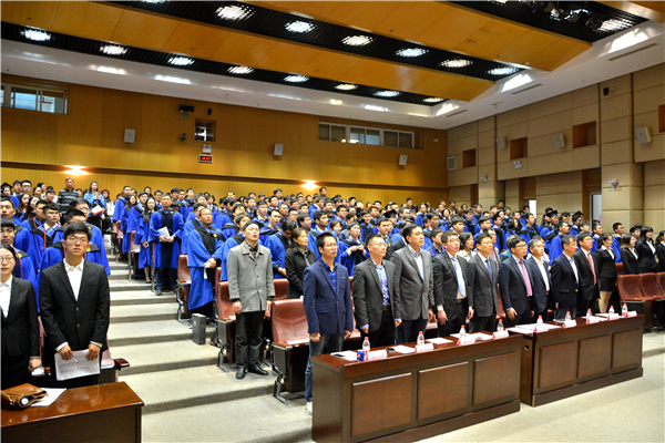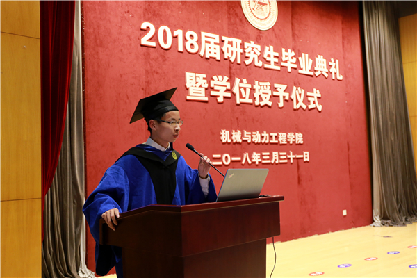 杜朝辉首先向毕业生们表示热烈的祝贺,对悉心培养的导师和默默付出的家长表示衷心的感谢。此次毕业典礼中,有上海市优秀毕业生和校优秀毕业生的代表,还有28名积极响应国家号召,赴中西部关键行业重点单位和基层单位就业的优秀毕业生代表。在即将踏入社会之际,杜朝辉与同学们分享了梦想选择、学习创新,以及努力奋斗这三方面的感悟。他希望同学们作为交大机动学子,要以实现民族复兴为梦想,选择在不同的岗位上为国家做出应有的贡献;在今后的工作生活中通过不断的学习和创新,走上事业的高峰。谈及奋斗,杜朝辉认为,能进入交大机动公司学习本身源于大家不懈的努力,他希望毕业生能够在今后的工作中继续发扬求学时的拼搏精神,努力实现自己的人生梦想。