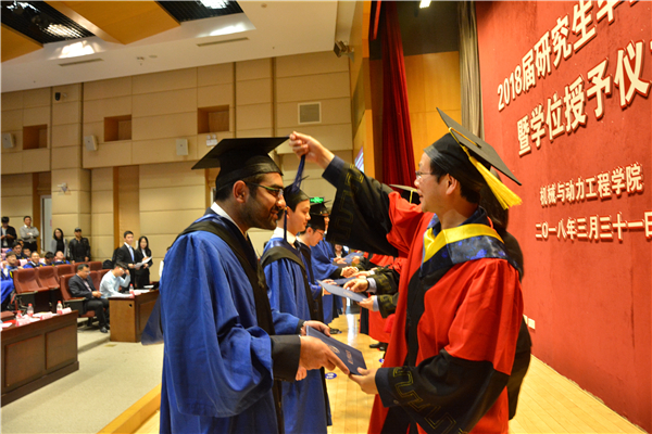 在神圣庄严的学位授予仪式环节中,毕业生按照顺序依次登台,满怀喜悦地从导师手中接过学位证书并合影留念,记录下这一光荣而又重要的时刻。