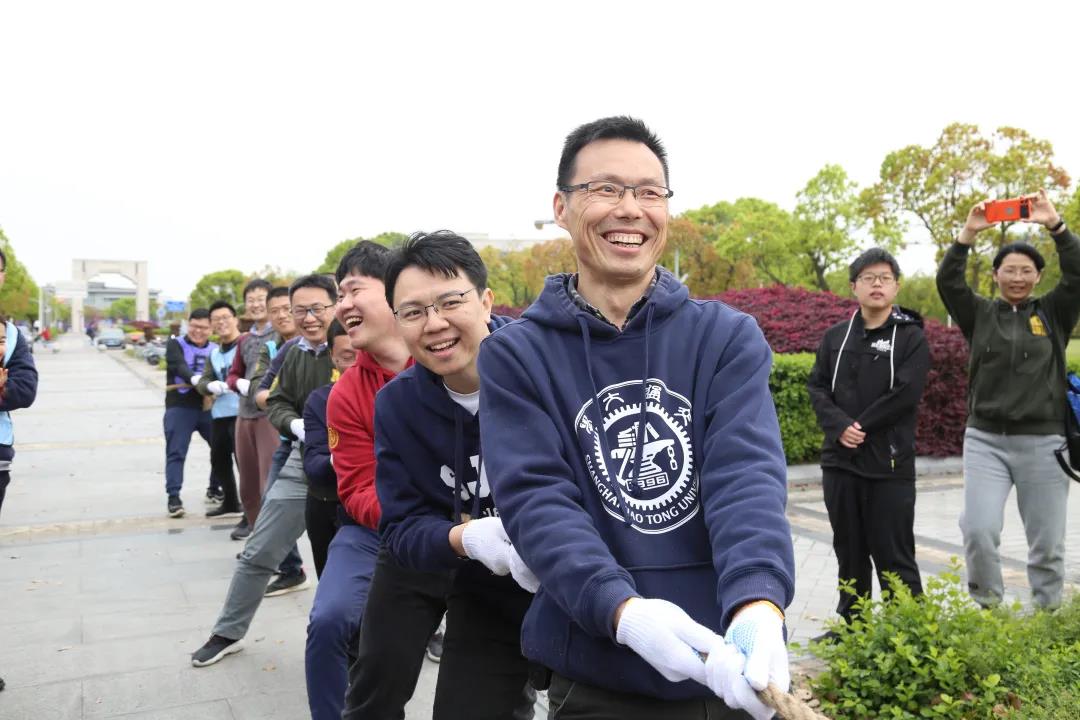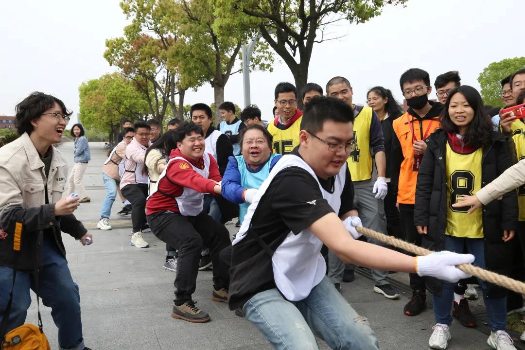 四个趣味项目结束,现场组织了师生拔河友谊赛。同学们跃跃欲试,都想与老师们来一次“正面对决”,老师们也全心投入,享受着与员工们的拔河过程。