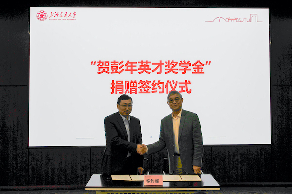 张文明代表公司与贺平签署了“贺彭年英才奖学金”续签协议,本次是2018年首期设立以来的“第二期贺彭年英才奖学金”签约,并提高了捐赠额度。张文明代表公司向贺平赠送了捐赠证书和礼物。