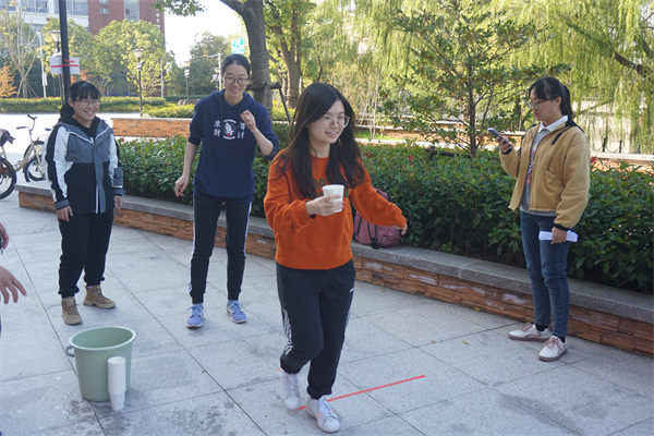 之后,选手通过解答线索,搜寻八个地点参与游戏,同时确定小组的行动路线。解开线索并顺利到达游戏地点后,同学们积极分工合作,互相配合,顺利完成了 “砥砺前行”、“四渡赤水”、“唱响中国”、“勇往直前”、“心有灵犀”、“不忘初心”、“扭转乾坤”、“飞夺泸定桥”等游戏。每项游戏之后,每支队伍有一次答题机会,题目包括党史、党章、中华民族传统文化等,答对题目可获得额外加分。