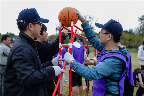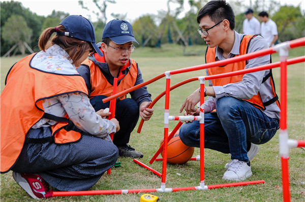 同学们分别组成了“王中王队”、“山竹队”、“黄金甲队”、“狮子王队”,先后进行了“蛟龙出海”、“坦克大战”“、过山车”等挑战项目。游戏过程中,大家同心协力,不仅感受到同学间的团结友爱,也领悟到团队沟通与协作的重要性。