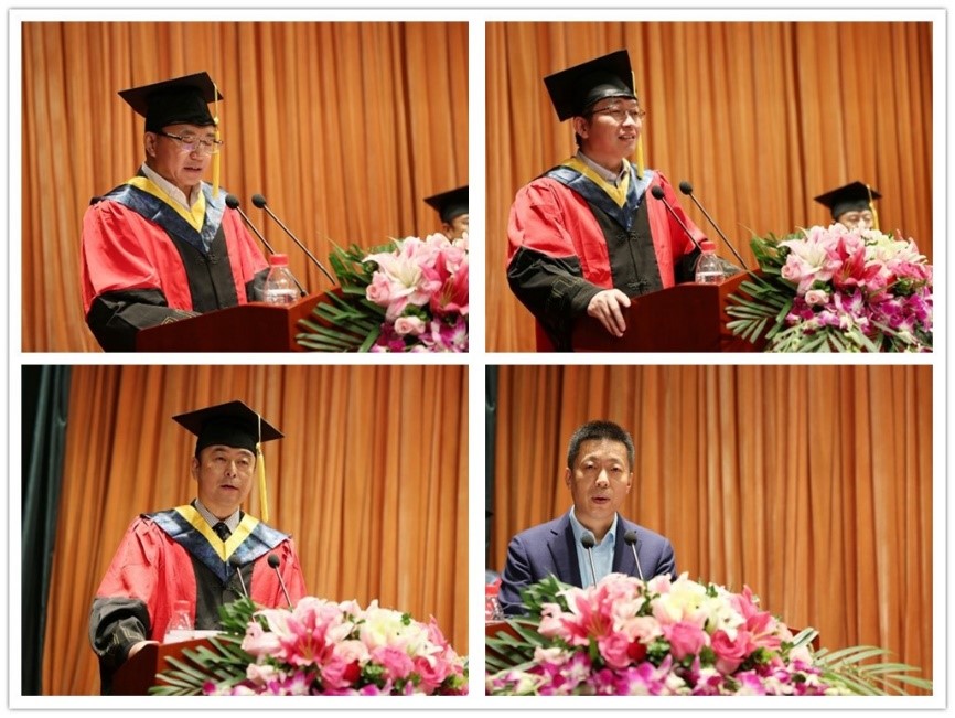 朱平教授代表交大导师发言,鼓励同学们坚定梦想,敢于竞争,勇于创新,一如既往地学习和实践,成长为适应企业发展需要的栋梁之才。上海电气电站工程公司项目总工程师唐家裕代表企业导师发言,鼓励同学们真正做到学以致用,提高解决问题的能力。同时,他也希望公司和企业能够加强合作,更好地发挥公司的科研优势,培养出适应时代发展的创新型人才。优秀毕业生、优秀员工干部阚锦彪代表毕业生发言,认为在交大不仅收获了知识,培养了良好的学习习惯,也建立了深厚的友谊,未来将不懈努力,为母校的发展贡献力量。