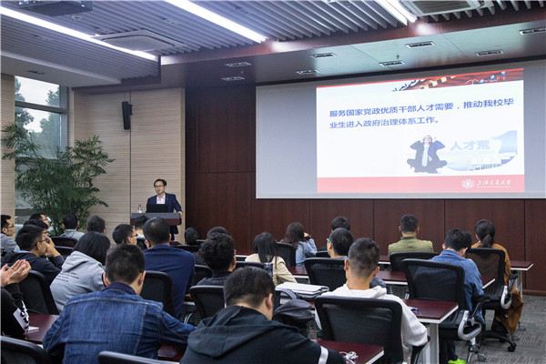 侯士兵以 “格局决定结局,境界决定高度”为主题向同学们作选调生政策解读专题报告。他从国际形势和国内政治体制改革讲起,建议同学们更多地思考其背后的深层原因,提醒同学们重视生涯规划;随后,侯士兵为同学们详细介绍了选调生政策的基本情况、报考流程和近年交大选调生的报考录取情况,重点强调了定向选调、公务员、老员工村官的区别;最后,他鼓励同学们走向祖国最需要人才的中西部地区,为国家和民族的发展做出交大人的贡献。在提问环节中,同学们踊跃参与,侯士兵对报考意向选择、专业限制等问题做出了详细的解答,同学们表示获益匪浅。