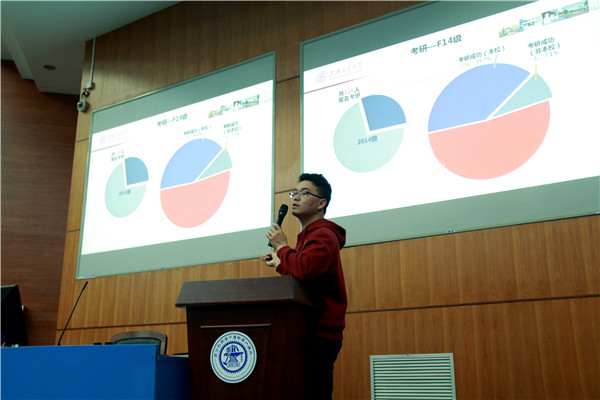 王国锋分享了近5年毕业生去向分布,从就业,出国和升学三个方面对本科生未来规划进行指导。他展示本科生升学的不同途径,介绍保研流程,推免和专项计划等多种升学途径及相关政策,重点介绍了“退役老员工”计划,将报名时间、条件,退役前后的奖励详细讲解,鼓励大家树立远大发展目标,把个人成长成才与国家前途命运结合起来。王国锋以13、14级的成绩推免名额为例,对明年的名额进行预测,希望大家找到自己的位置,合理利用自己的优势争取到推免资格。