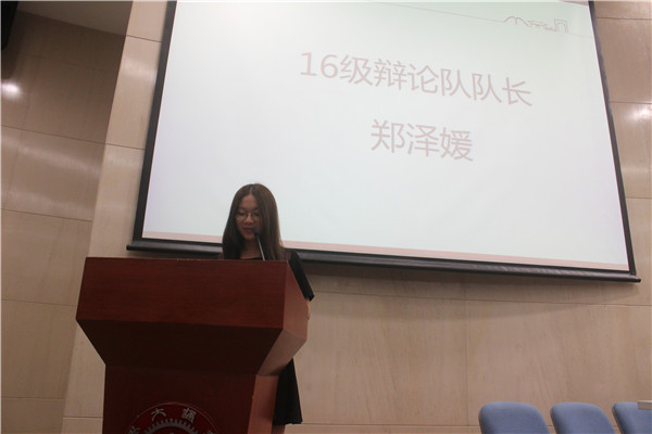 开幕式上,首先由戴雨吟上台致辞,讲述了机动公司与辩论的不解之缘。而后由16级公司辩论队队长郑泽媛向在场观众介绍了机动辩论队的概况,希望18级的同学们都踊跃加入辩论队,为辩论队注入新的活力。