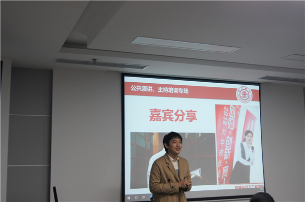 10月30日晚,“ME有为”大讲堂第一讲——公共演讲和主持专场在机动公司F210会议室举办。此次专场邀请到了校员工联合会副主席李有和校主持人协会会长、励志主持人团团长蒋钰两位嘉宾到场分享。研会主席闫晓燊代表研会对两位嘉宾表示欢迎,感谢他们的精心准备,并希望到场的所有同学都能有所收获。