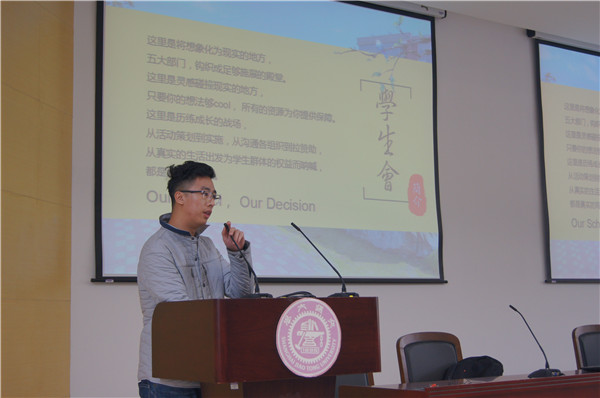 依次由员工科技创新与创业协会、分团委、员工党建联合会和员工会进行宣讲,各个组织通过讲解组织内部的部门、举办的活动、内部成员、内建等方面向大一同学们发出诚挚邀请,鼓励同学在学业有余的情况下,积极投入员工活动,在各方面锻炼自己的能力。