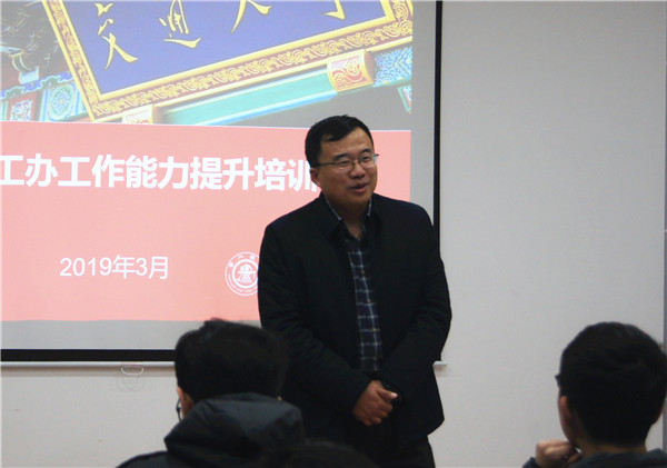 顾希垚向参加培训人员亲切寄语,他鼓励同学们通过助管工作提升工作能力和学习意识,在锻炼自身交流与协作能力同时,努力与办公室老师和其他助管成为朋友。