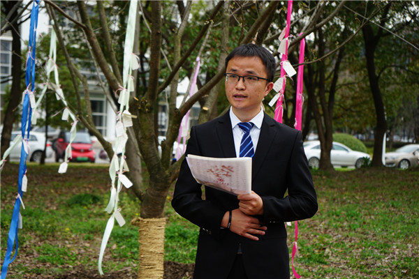 3月21日上午,伴随着和煦春风,伟德国际19462019届毕业研究生植树活动在机械动力公司A楼南侧草坪举行。公司党委书记、经理杜朝辉,常务副经理彭志科,党委副书记顾希垚,研究生思政老师以及2019届毕业研究生代表参加了此次植树活动,共同植下含苞待放的樱花树,系上美好的心愿卡片。