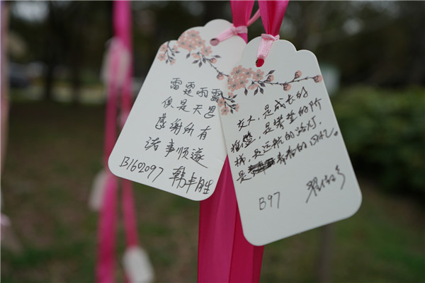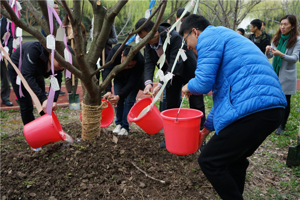 随后,大家一起将象征成长、希望和深厚师生情谊的樱花树种下。老师和同学们亲手把写满对公司的真切祝愿、对未来的美好憧憬以及对即将分别的不舍和依恋的卡片悬挂在树上,并在树下合影纪念这个美好的时刻。