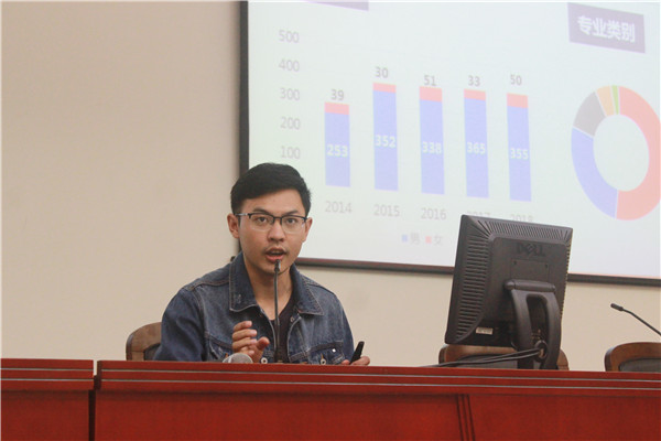 赵航对同学们的就业选择进行了指导。对2014-2018年机械动力公司本科毕业去向情况做了详细介绍。还分别对每个专业的就业形势做了汇报,并横向对比了国内几所名校的毕业生就业去向,引领同学们合理规划自己的未来就业安排。