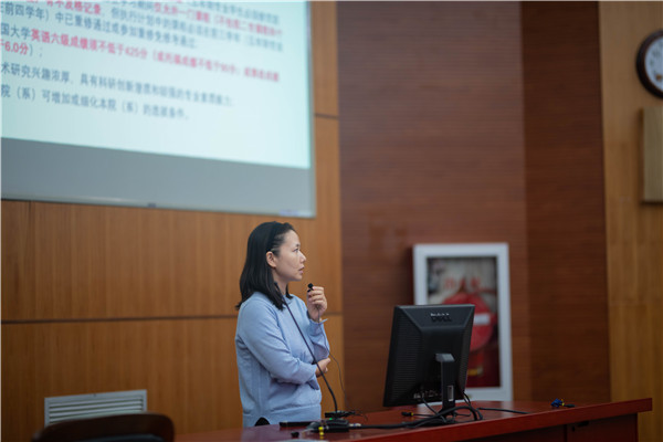 本次会议以总结上一学年综合表现,引导同学做好生涯规划为主题,分别按四个议程进行:推免保研政策介绍、就业质量分析与生涯规划、学业经验分享、年级情况通报。