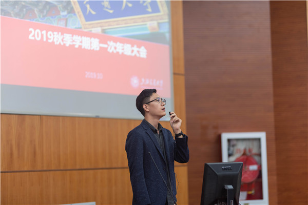 最后,王文章做了年级情况总结,展示了2018-2019年度国家奖学金和上海市奖学金获奖同学风采,就大一学年成绩做了统计分析,剖析了目前广泛存在于同学间的思想问题,进一步鼓励同学多走出宿舍,做好个人时间规划,保持心态开放和交流沟通,多参加体育锻炼。