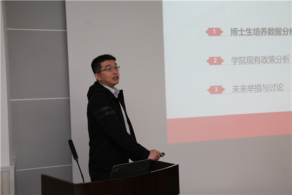 熊振华汇报了公司博士生培养工作。他通过详实的历史数据,对比分析了博士生不同培养方式,学科、系所、导师的培养周期和论文成果。他认为,应以大数据为依据有针对性地出台相应的政策,从而缩短博士生培养年限、提高博士生培养质量。他提出通过建设公司砺远菁英会来完善博士生荣誉计划方案,同时要加强博士生开题和中期的统一考核,完善资格考试和分流淘汰机制,逐渐实现博士生培养从按时向按质的转变。