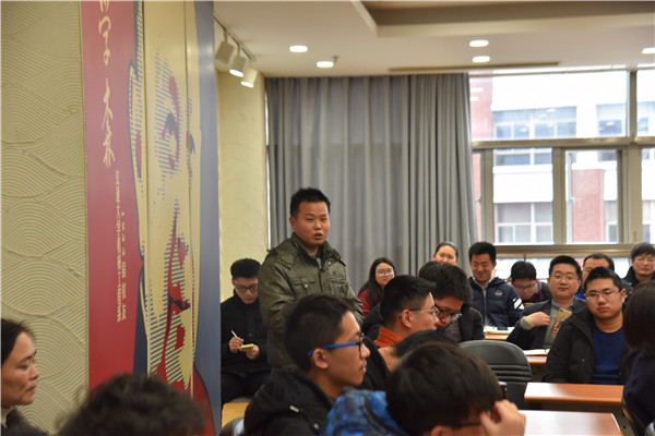 在接下来的师生座谈会中,在场的员工代表进行了学习经验的分享。F16级员工高飞积极与老师交流,改善了学习态度和方法,取得了不小的进步。原F13级员工董波告诫在座的同学们一定不能放弃自己,要多与他人沟通,向优秀同学学习。