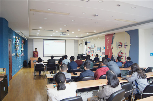 王文章首先介绍了2018-2019学年第一学期年级学业成绩情况,针对班级平均分、最高分、最低分、不及格人数等指标进行了班级横向对比分析,帮助班主任了解班级成绩情况。通告近期年级工作安排,他表示本学期员工活动多,课程重,任务紧,压力大,需要全体班主任与思政教师协力开展学业引导与学风建设工作。