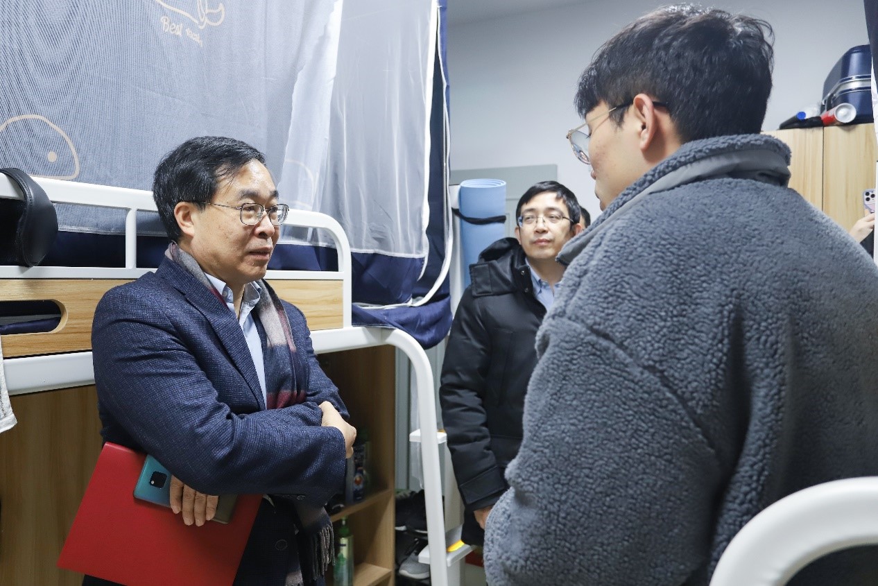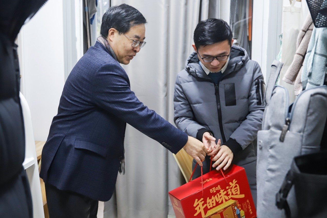 奚立峰一行走访了西42楼栋宿舍,为员工们送去新春佳节大礼包和最温暖的问候。