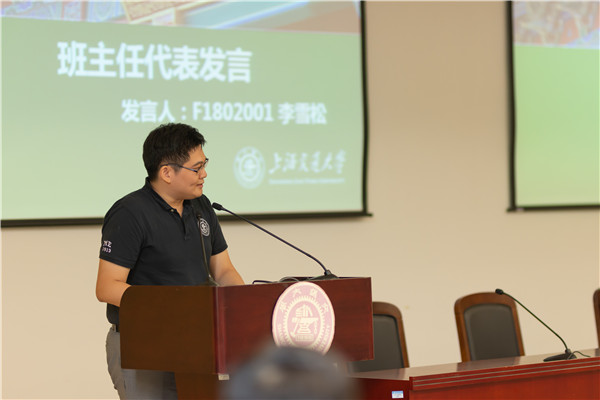 班主任代表李雪松也作了发言。他告诉同学们大学四年的规划对他们的人生至关重要。他勉励同学们在军训中锻炼自己的意志与奋斗精神,志存高远,在今后的学习工作中不断奋进。