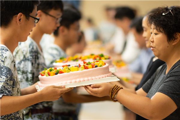 大会临近尾声之时,军训期间过生日的同学们收到了一份特别的礼物——集体生日会。二十多名军训期间过生日的同学收到了来自大家的祝福。在《祝你生日快乐》的歌声与掌声中,家长代表为十名学子送上生日蛋糕,会场洋溢着浓浓的亲子温情。