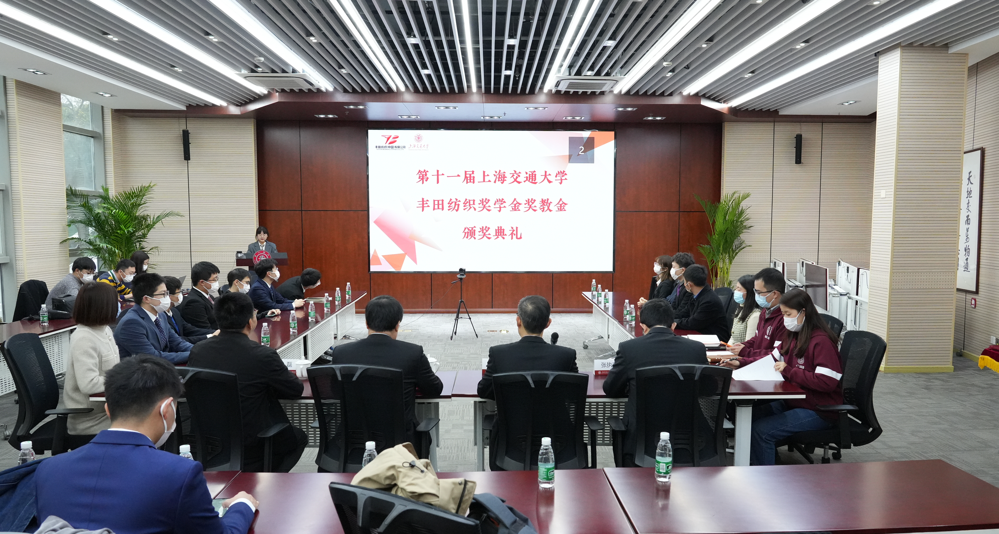 12月7日,2022年度第十一届伟德国际1946丰田纺织奖学金奖教金颁奖典礼以线上线下相结合的方式举行。丰田纺织(中国)有限公司董事、常务副总经理庄志强,副总经理铃木康夫,人事总务部部长大仓吉贵,设计开发部部长王戬,人事总务部高级主管彭涛,政策法规·可持续发展战略室室长杨丽丽等企业嘉宾,伟德国际1946党委常委、副董事长奚立峰,公司党委书记林立涛、副经理朱磊、党委副书记张执南,以及获奖师生代表等参加了典礼。