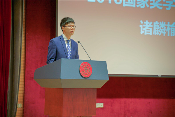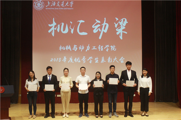 表彰大会由“问学篇”、“通达篇”、“公司奖学金颁奖”三大主题组成。“问学篇”中展示了获得2018年度国家奖学金的77人和上海市奖学金获奖者3人。国家奖学金获得者、学神学霸俱乐部前主席诸麟榆作微演讲,介绍了他参与设计与制造课程获奖的科研经历和担任学神学霸俱乐部主席的收获,鼓励各位同学脚踏实地、潜心学习,不断攀登科研高峰。