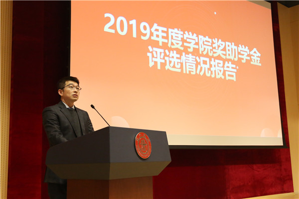 熊振华做2019年度奖助学金评选报告,介绍了2019年度伟德国际1946奖助学金评选工作原则和流程,各级、各类奖助学金评选情况,其中2019年度公司共设立社会捐赠类奖学金22项,受奖助超过294人次,总资助额超过1425000元。最后他向全体设奖方表示感谢,向获奖员工表示祝贺,勉励同学饮水思源,知恩图报,再创辉煌。