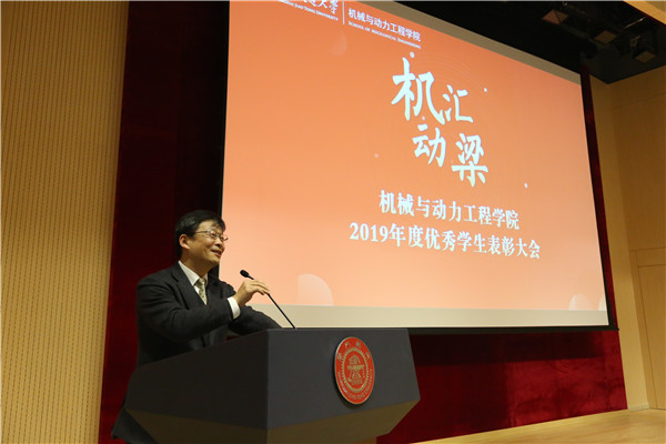 杜朝辉作总结寄语,他讲到社会各界积极设立的各类奖、助学金,鼓舞了机动学子求学求知的热情,他向设奖方表示衷心的感谢,向全体获奖同学表示祝贺,希望机动学子不忘初心,继续努力,做好学业与科研,在获得荣誉后更要肩负起时代责任,勉励同学要为了实现伟大的中国梦、为了个人未来的发展不断拼搏。