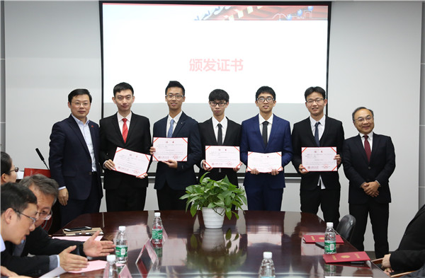 企业代表、公司及公司代表为获奖同学颁奖。