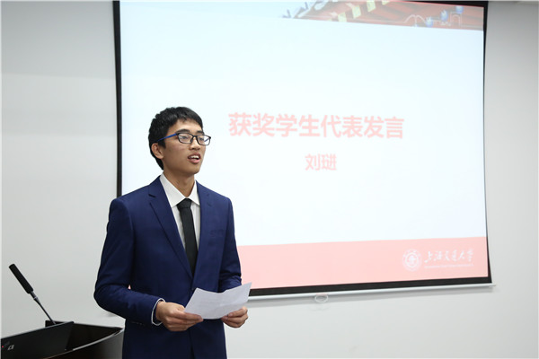 获奖同学代表刘琎作主题发言。他总结了自己本科三年半以来的科研生涯,指出自己取得成就的法宝在于不断培养发现问题、解决问题的能力。表达了对于公司栽培、企业鼓励的感谢后,他表示日后会继续砥砺前行,和同学们一起成为有用的交大人。