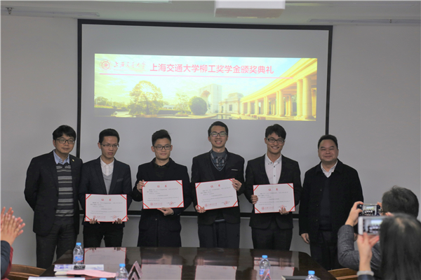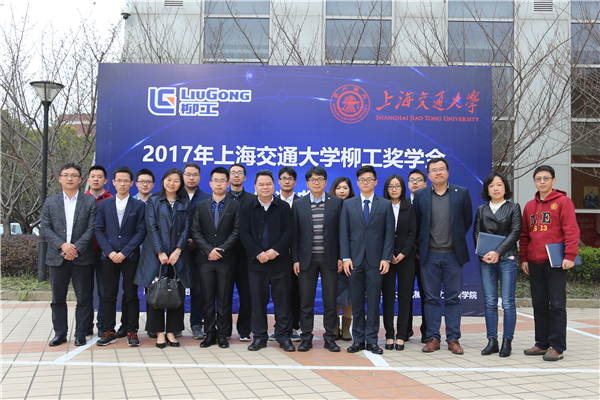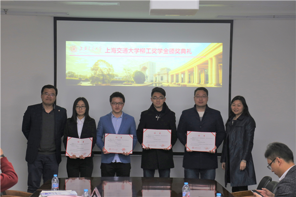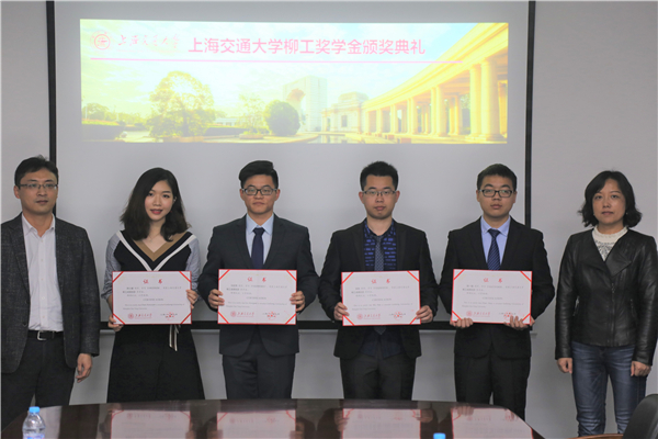 本届柳工奖学金获奖员工代表王艳真上台,分享了自己的学习、科研成果,提出要继续潜心钻研、脚踏实地,承担作为交大人的责任。