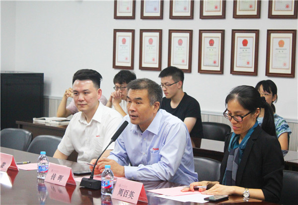 在获奖同学发言环节,研究生黎斌讲述了自己的科研经历,分享了自己在机器人领域的学习心得,同时对发那科公司的支持表示大力感谢;本科生高旭楸分享了他在学术研究、员工工作、志愿公益等领域的成绩,分享了自己对制造业管理科学的见解,他表示在发那科公司的帮助下会更加努力,再创佳绩。