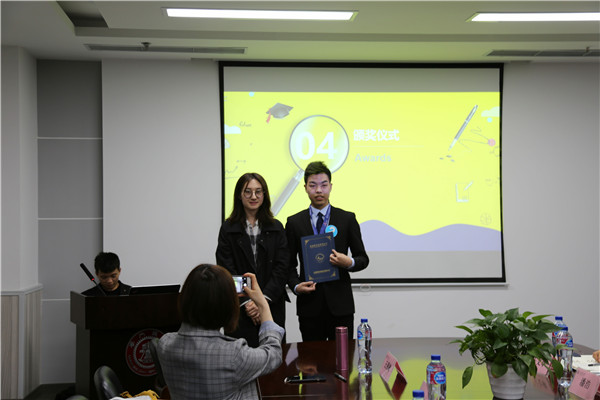 最终,马英皓凭借优异的表现获得了一等奖,尤志远和叶辛分别获得二等奖、三等奖,李相越、温越盈获得优胜奖,现场评委们为选手颁奖并合影留念,至此第五届廷亚奖学金评选活动正式结束。