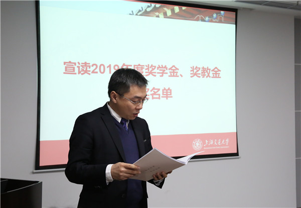 彭涛宣读本年度奖学金、奖教金获奖名单。与会嘉宾为获奖老师员工颁发证书。