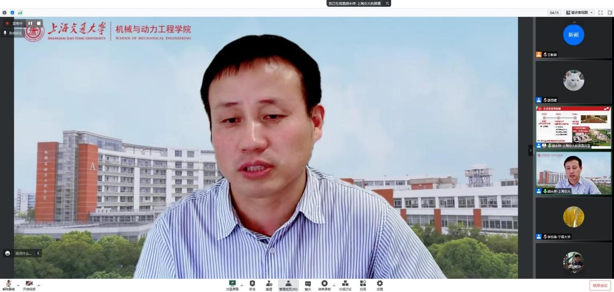 胡永祥分享了上海交大机械工程专业新时代人才培养需求、培养体系和主要举措,表示在新一轮科技革命和产业变革加速演进、创新驱动下,国家制造业高质量发展面临技术、产业和模式的变革,上海交大机械工程专业通过开展国际合作、宽口径交叉融合课程体系等方法,持续探索和推进人才培养体系改革。王新昶介绍了教研室下一步建设计划,包括教研室规章制度文件发布、平台资源建设和后续主题活动。