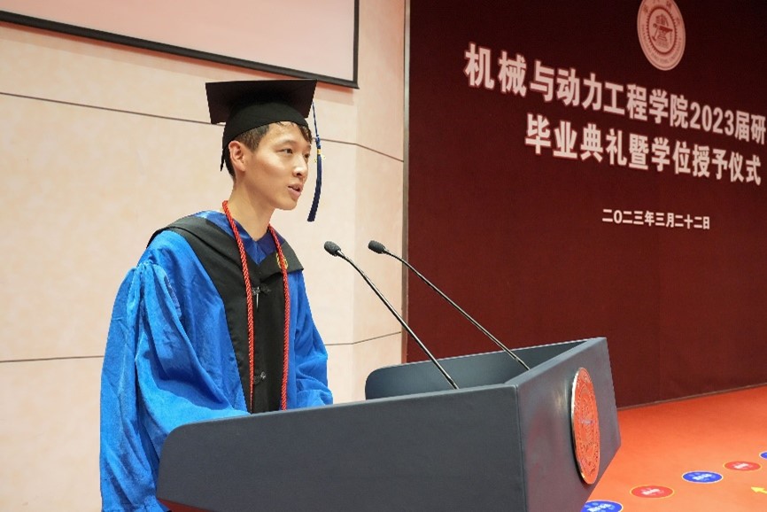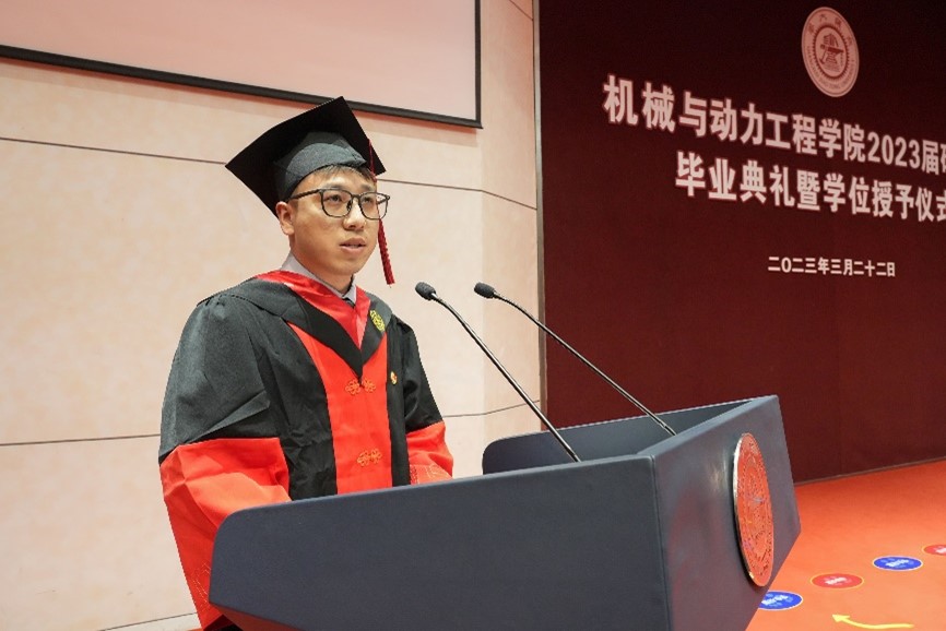 优秀博士毕业生代表王志永结合所学所获,鼓励毕业生常怀感恩和信心,锤炼更加坚强的思想品质和与时俱进的创新精神。优秀硕士毕业生代表衣峰毕业后选择为国家核能事业的发展贡献力量,号召大家“在平凡中追求卓越,在梦想中坚持不懈”。