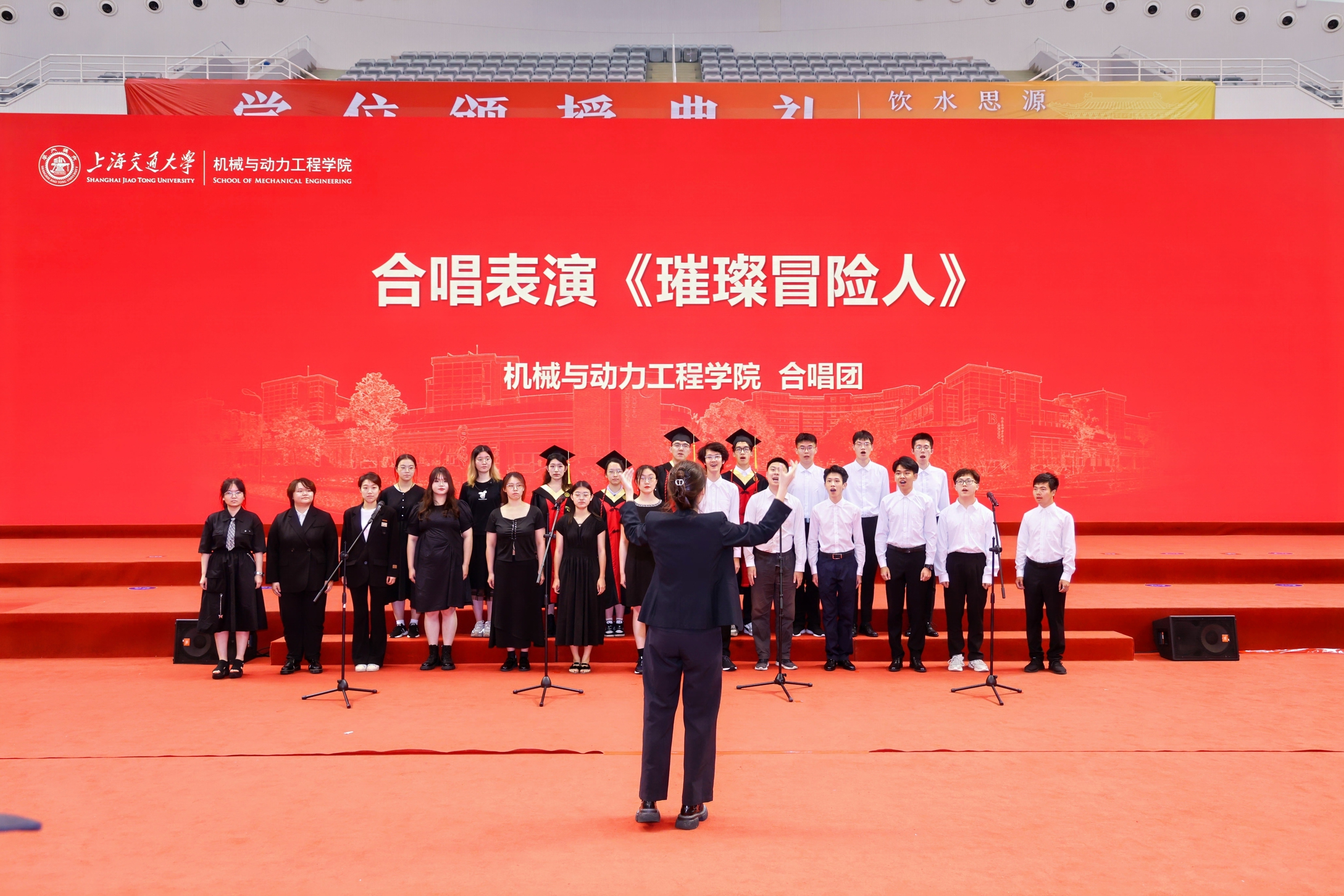 全体毕业生起立,许下铮铮誓言:“我将谨记饮水思源,爱国荣校之校训,恒德惟实,精勤不倦,强国兴业,砥砺前行,传机动精神,展交大气魄,以传承文明、探索真理为己任,为振兴中华,造福人类而奋斗终身!”公司合唱团带来《璀璨冒险人》歌曲,为毕业生送上祝福。