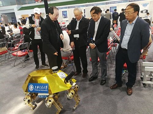 在创新技术路演组比赛中,六足机器人现场展示了自主踏障、攀爬45度楼梯等高难度动作;青年创意组比赛中,团队展示了变构态轮腿移动作业机器人创新设计方案。