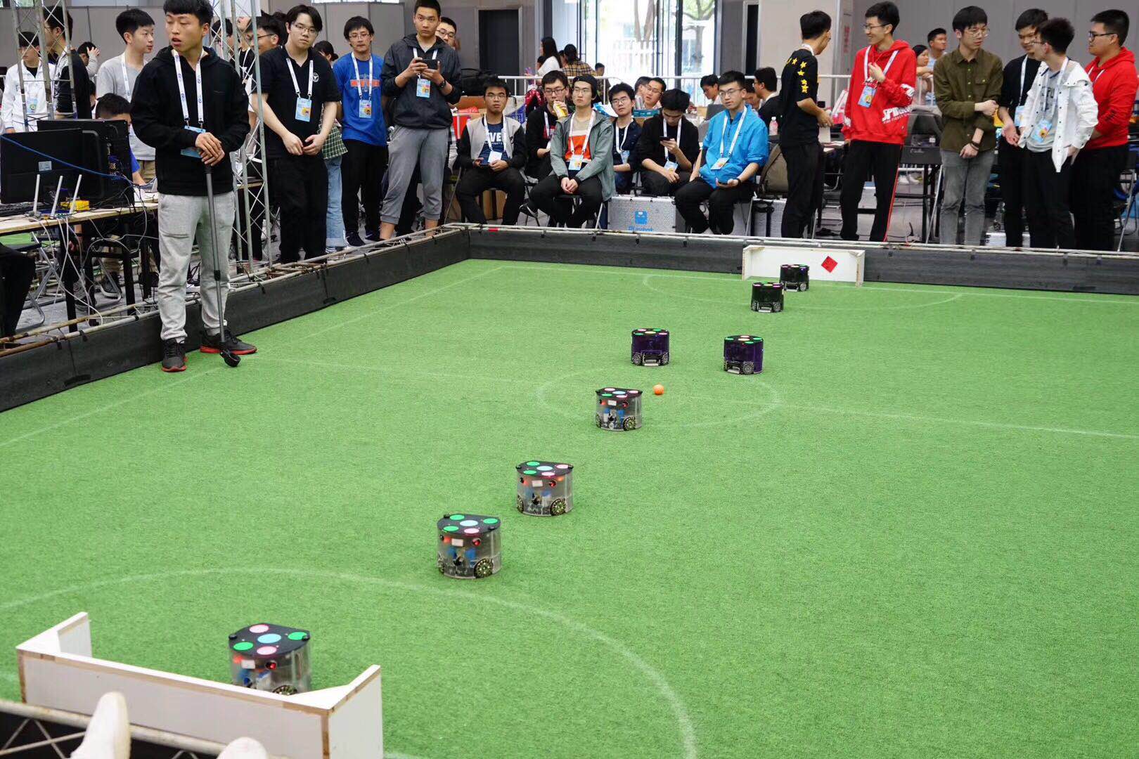 小型组轮式机器人足球比赛是RoboCup机器人世界杯赛的主要项目之一,涉及机器人学、人工智能、智能控制、机器视觉和数字图像处理等多个领域,是机器人技术和人工智能理论的良好的实验平台。比赛中,双方队伍各使用4台足球机器人踢足球。整个系统包括机器人车载子系统、视觉子系统和决策子系统。员工主要通过编程,让每个机器人具有守门员、前锋、后卫等不同功能,不同角色相互协作,完成射门得分。在此过程中,员工可以开展机器人运动控制、计算机视觉定位、人工智能、决策、路径规划与避障算法等实验研究。“SRC战队”过关斩将,从16支队伍中突围而出,以2:1取得了决赛的胜利,获得了本次比赛的冠军。