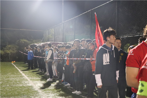 赛前,尽管寒风凛冽,同学们依旧早早的来到了现场,为队员们加油助威。