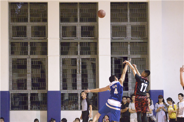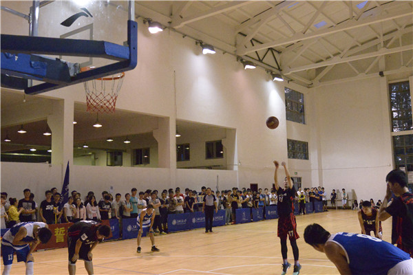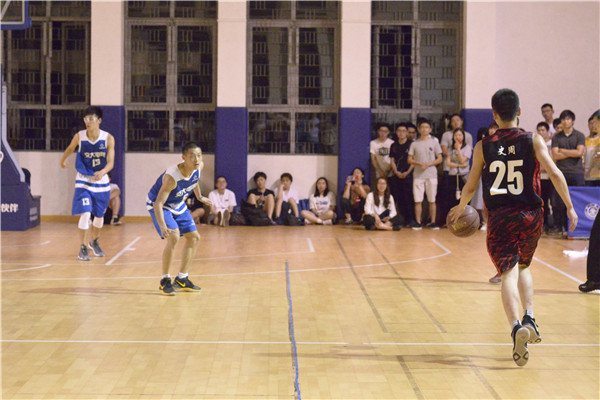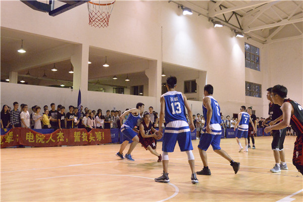 决赛中,伟德国际1946与电子信息与电气工程公司狭路相逢。作为交大工科的两大王牌院系,本场比赛吸引了众多的关注,南体两侧的观赛区站满了密密麻麻的观众。