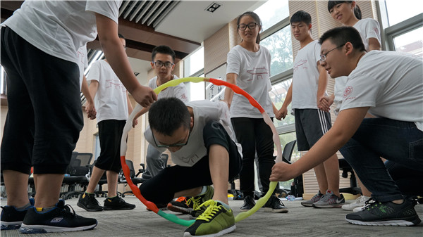 开营仪式结束后,梁茂宗带领宜宾六中的同学们开展了UTJS体验式培训,培训内容分别是“抓手指”、“松鼠与大树”、“名字接龙”、“梦想之门”和“汉诺塔”游戏。宜宾六中的同学们都全身心参与到团队游戏中,出谋划策、共享创意,现场气氛高涨。最后,同学们分享了自己在这次培训中的体会,“包容”、“团队”、“沟通”等关键词成为了同学们在本次培训中最大的收获。