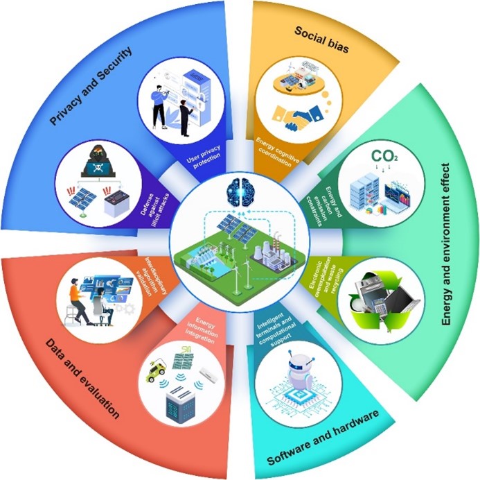 本文提出的AGIE可以提升能源系统的智能性、安全性和可信性,为未来智慧能源带来新的发展机遇。通用能源人工智能未来同样面临诸多挑战,涉及多学科交叉,数据获取和模型验证难度较大。能源数据可能涉及用户隐私,需建立保护机制。社会偏见问题和安全性值得关注,模型应具备自动适应不同地区用户偏好的能力,同时内部算法缺陷或外部恶意攻击可能产生不可靠的能源决策,需建立安全监管机制。在软硬件方面,通用能源智能可能依赖于芯片、网络和智能终端等技术的发展,以支持其复杂的学习计算和人机交互。通过应对数据、隐私、社会偏见、环境影响、安全性和软硬件等挑战,能源系统通用人工智能的实现有助于优化全球能源资源配置,加速全球低碳、可持续发展转型,为应对气候变化和全球能源危机提供新的解决方案和基础研究支持。