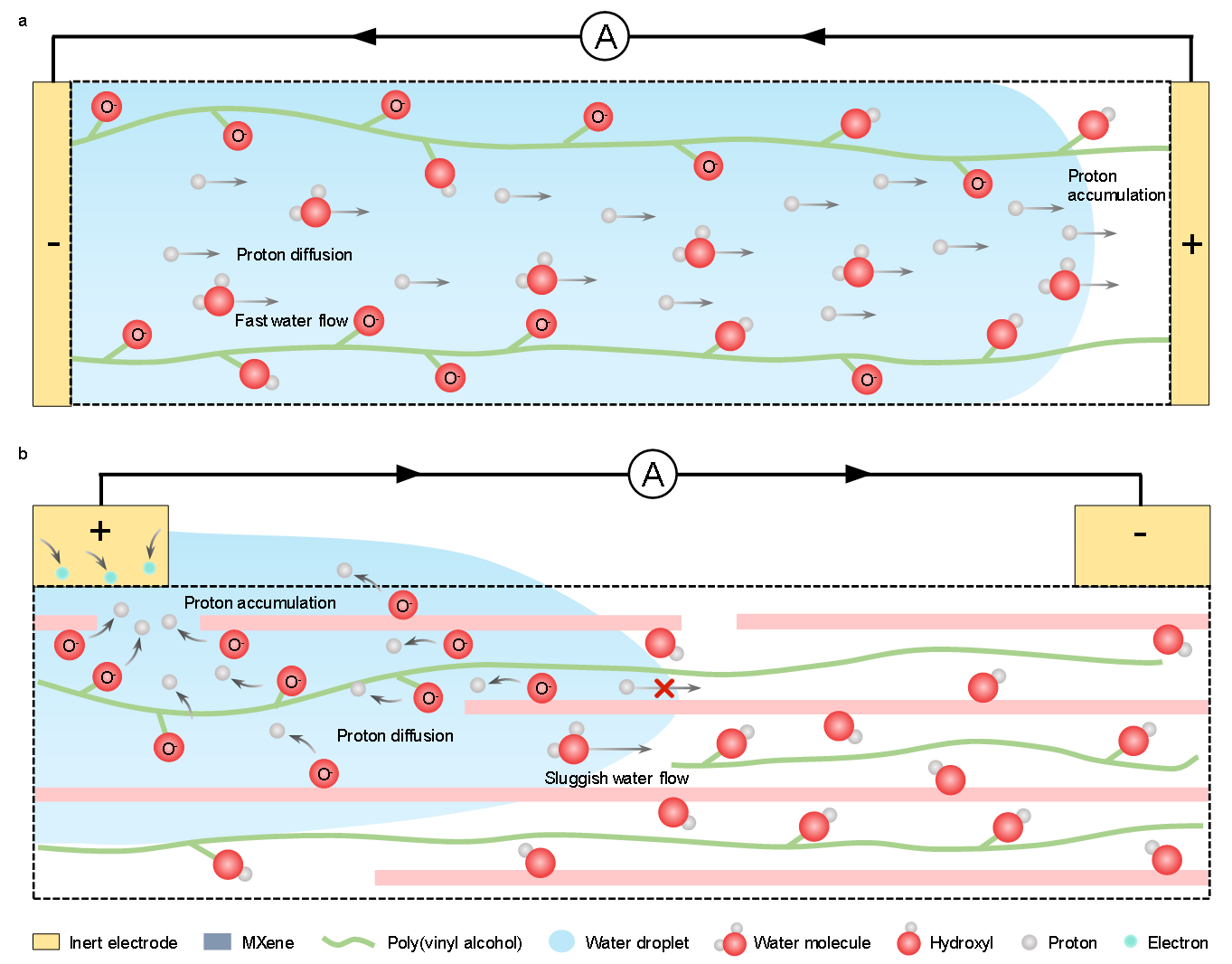常规及新型质子扩散诱导的水伏发电技术原理对比