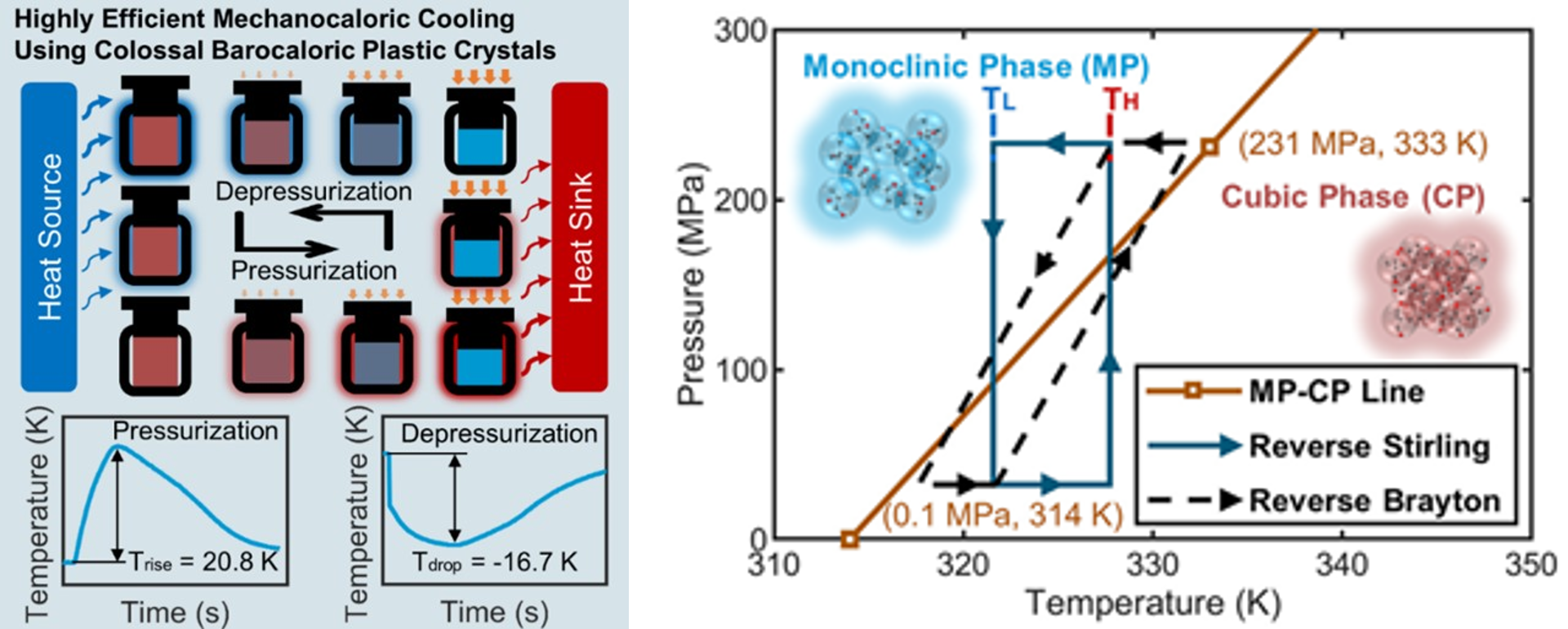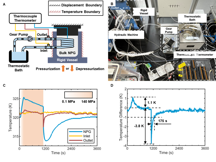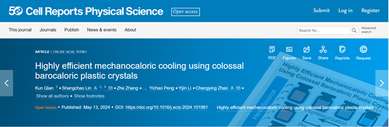近日,工程热物理研究所林尚超课题组在Cell Press旗下Cell Reports Physical Science上发表题为“Highly efficient mechanocaloric cooling using colossal barocaloric plastic crystals”的论文,利用低成本的压卡相变塑料晶体材料新戊二醇,设计并搭建了国内首台近室温的压卡冷却循环测试原型样机,为实现大规模清洁绿色制冷技术提供了新的解决思路。工程热物理研究所博士研究生千坤和林尚超副教授为论文共同第一作者,林尚超副教授、赵长颖教授和中国科公司金属研究所李昺研究员为共同通讯作者。