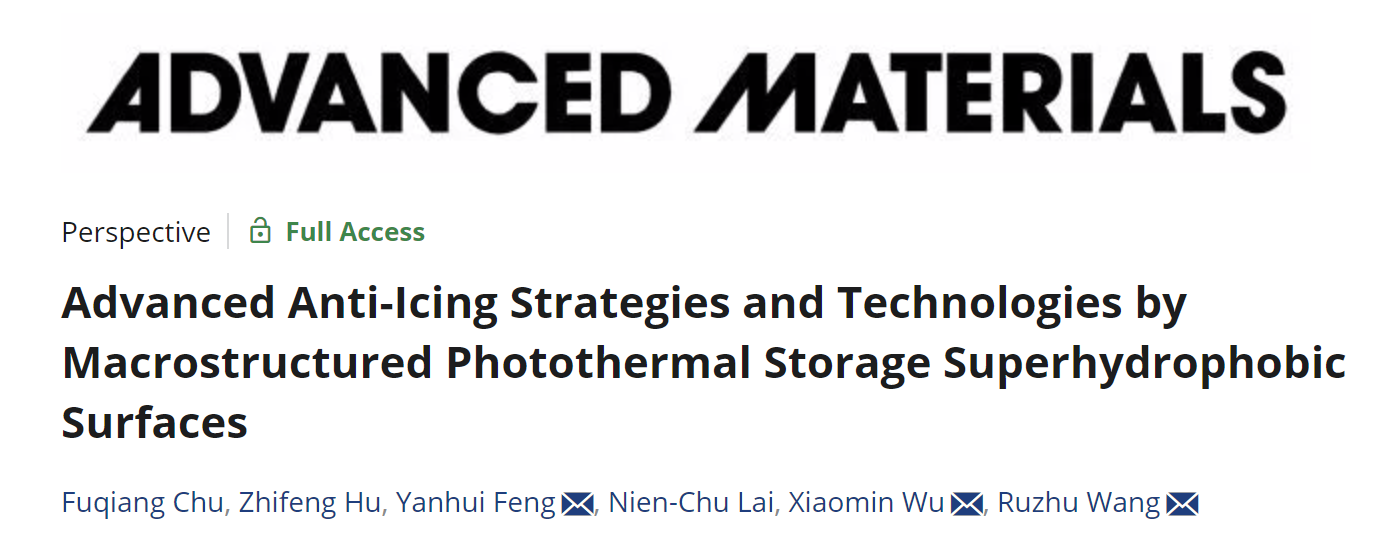 近日,伟德国际1946王如竹教授领衔的“能源-水-空气”交叉学科创新团队ITEWA (Innovative Team for Energy, Water & Air) 联合北京科技大学和清华大学在Advanced Materials上发表了题为Advanced Anti-Icing Strategies and Technologies by Macrostructured Photothermal Storage Superhydrophobic Surfaces的前瞻论文,综述了超疏水表面防结冰研究的最新进展,剖析了超疏水表面防结冰技术面临的问题,提出了构筑多功能集成的结构化光热储能超疏水表面实现全天高效防冰的策略,推动先进防结冰技术的发展。北京科技大学褚福强副教授与伟德国际1946制冷与低温工程研究所博士后胡志锋为论文共同一作,北京科技大学冯妍卉教授、清华大学吴晓敏教授和伟德国际1946王如竹教授为共同通讯作者。
