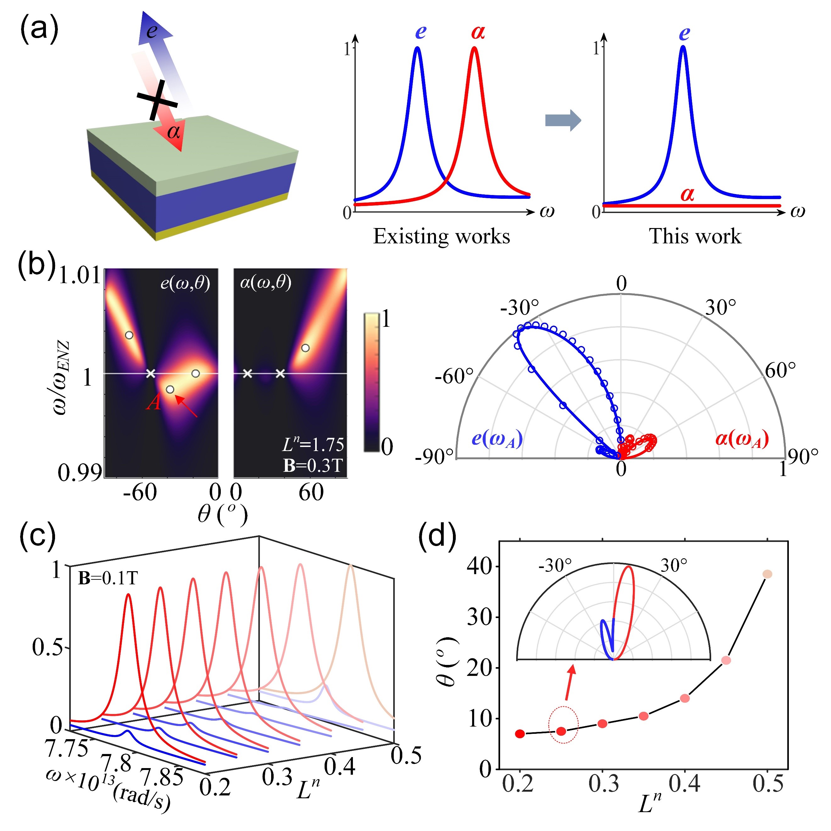 热辐射的基尔霍夫定律表明:热平衡条件下材料的发射率与吸收率相等e(λ,θ)=α(λ,θ)。这一定律指导着目前几乎所有热辐射器件的设计和开发。但实际上,基于该定律设计的热辐射器件存在固有的能量损失,比如对于太阳能吸收器,吸收器件从太阳光中吸收多少比例的能量,吸收器本身也会向太阳辐射相同比例的能量。因此,研究如何打破该定律,对于进一步完善微纳热辐射理论、设计新型微纳能源器件都具有重要意义。理论上,基尔霍夫定律根源于麦克斯韦方程组的互易性,研究如何打破发射/吸收的平衡,需关注如何打破时间反演对称性(如利用磁性材料),实现非互易热发射。但目前,国内外学者对非互易性热辐射的研究多依赖于较大的外部或内部磁场条件,且很难在宽角度范围实现完全打破基尔霍夫定律(|e-α|→1)。