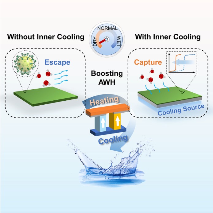 近日,制冷与低温工程研究所ITEWA创新团队在Cell Press旗下Cell Reports Physical Science发表了题为“A regulation strategy of sorbent stepwise position for boosting atmospheric water harvesting in arid area”的研究论文,提出在吸附侧构建冷源调控介孔MOF吸湿阶跃区间的新策略,可拓宽高吸湿量介孔材料在空气取水应用中的适用范围。论文第一作者是博士生冯耀辉和葛天舒教授,通讯作者是葛天舒教授和王如竹教授。