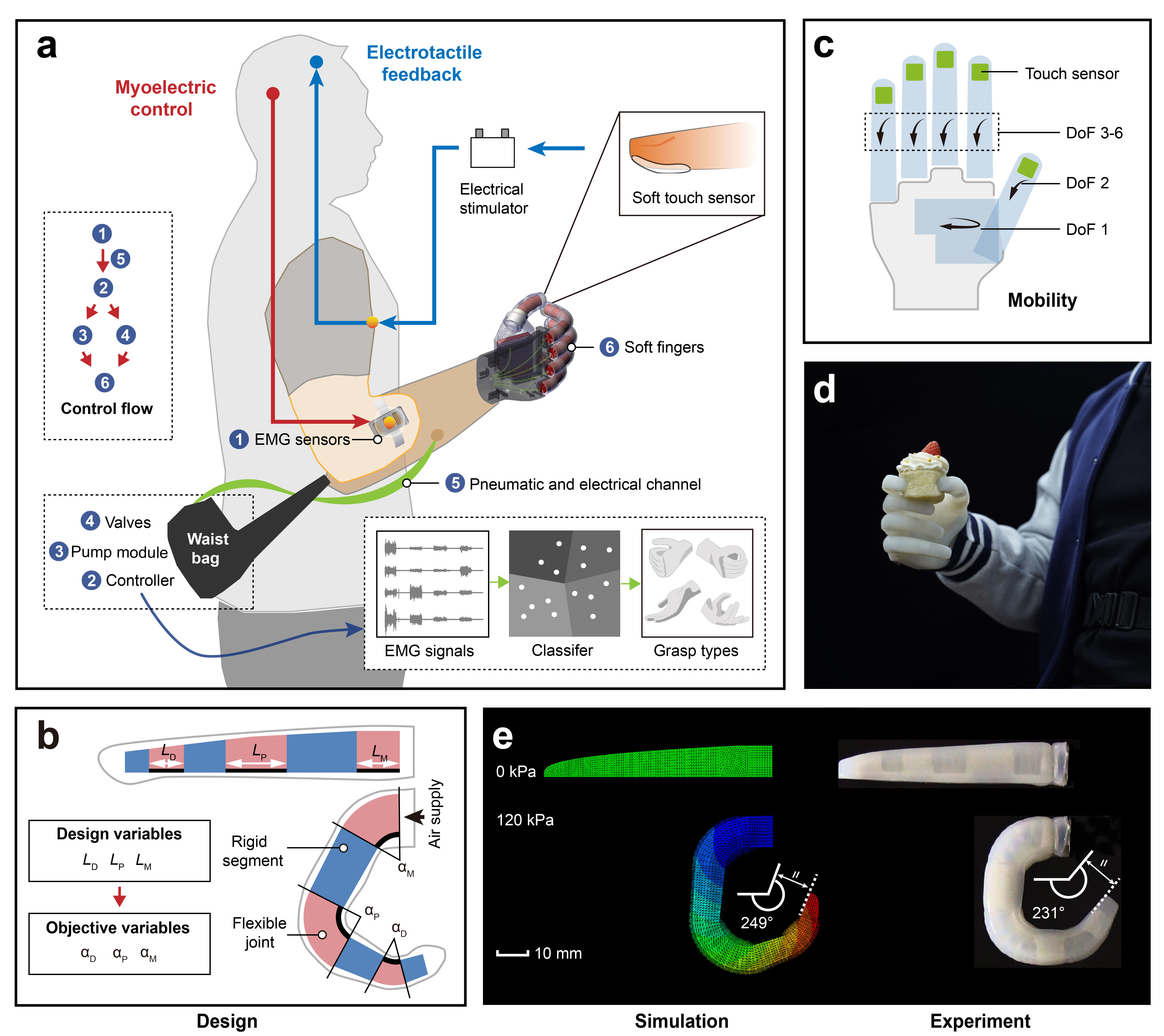 8月16日,《自然·生物医学工程》(Nature Biomedical Engineering)在线发表了伟德国际1946机器人研究所朱向阳、谷国迎教授和麻省理工公司赵选贺教授的合作论文“操作感知一体化的软体神经假肢手”(A soft neuroprosthetic hand providing simultaneous myoelectric control and tactile feedback)。伟德国际1946为论文第一作者和通讯作者单位,博士研究生张宁斌为论文共同第一作者。该论文也被Nature以“A tough prosthetic hand obeys the muscles’ commands”为题,作为研究亮点报道。